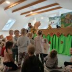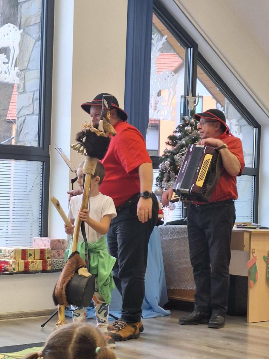 Przed świętami gościliśmy w przedszkolu Zespół Artystyczny „Roztoka” w składzie Roman, Marcin i Łukasz Kos. Panowie przedstawili historie, która oparta jest na opowieści o narodzinach Jezusa.
