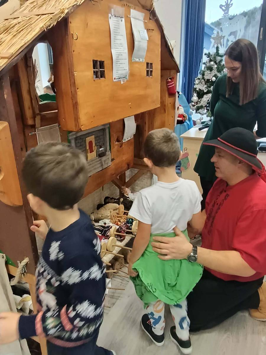 Przed świętami gościliśmy w przedszkolu Zespół Artystyczny „Roztoka” w składzie Roman, Marcin i Łukasz Kos. Panowie przedstawili historie, która oparta jest na opowieści o narodzinach Jezusa.