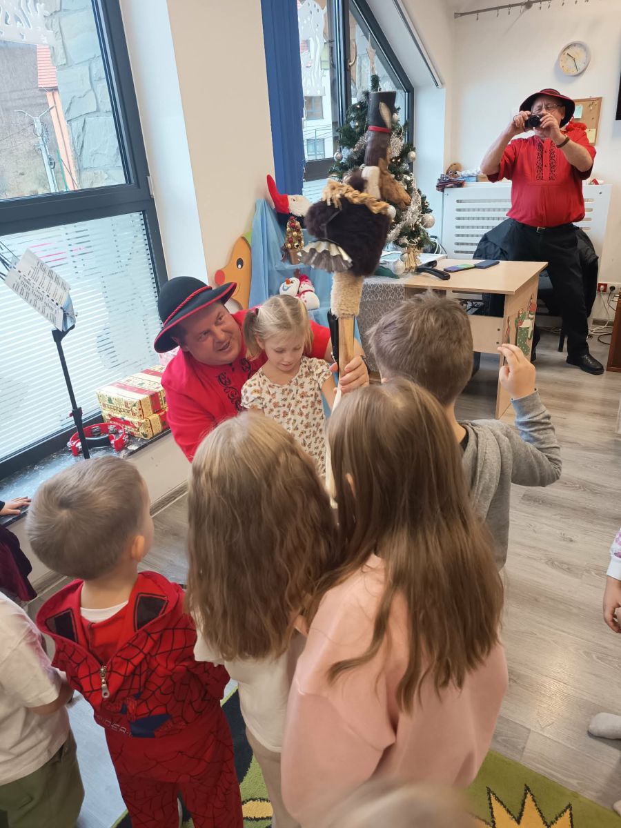 Przed świętami gościliśmy w przedszkolu Zespół Artystyczny „Roztoka” w składzie Roman, Marcin i Łukasz Kos. Panowie przedstawili historie, która oparta jest na opowieści o narodzinach Jezusa.