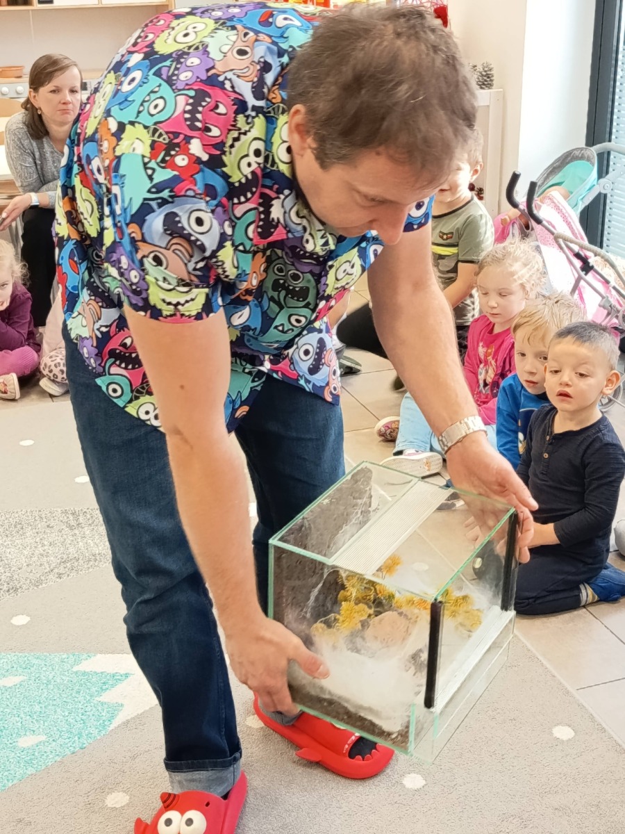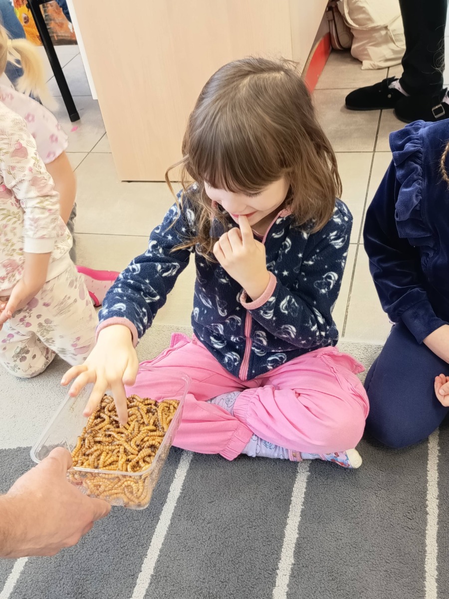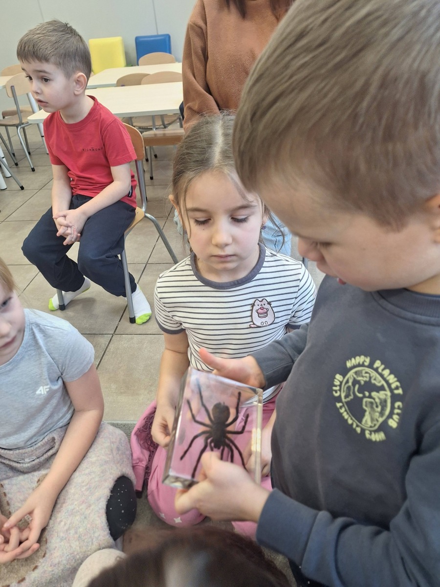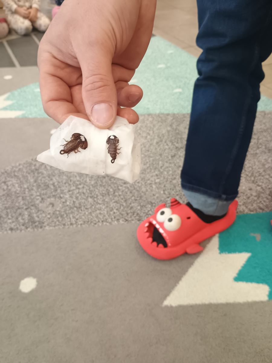 Odważniejsze przedszkolaki mogły dotknąć wylinek ptaszników oraz zabrać na ręce ich przysmak- żywe karaczany.🪳