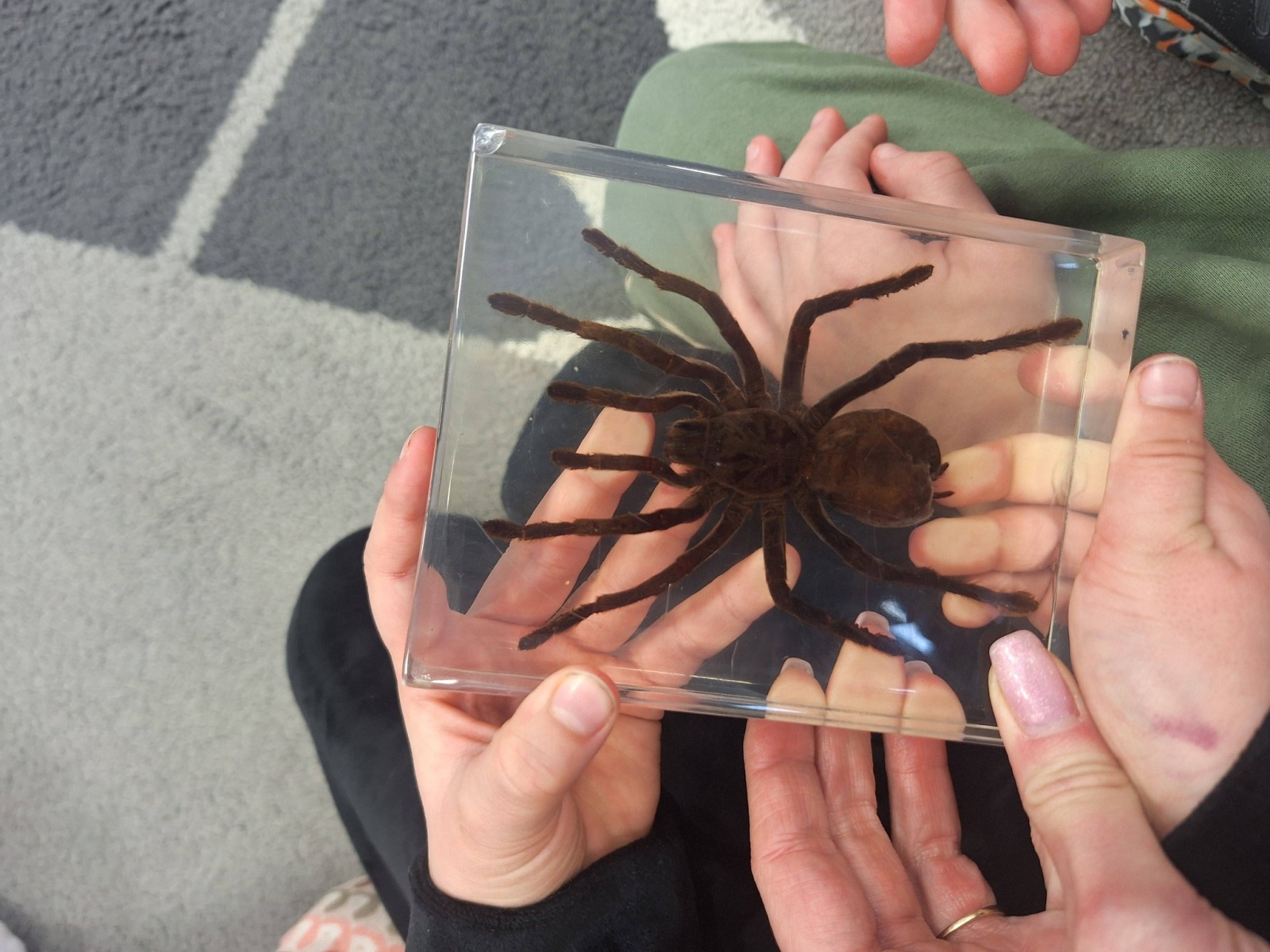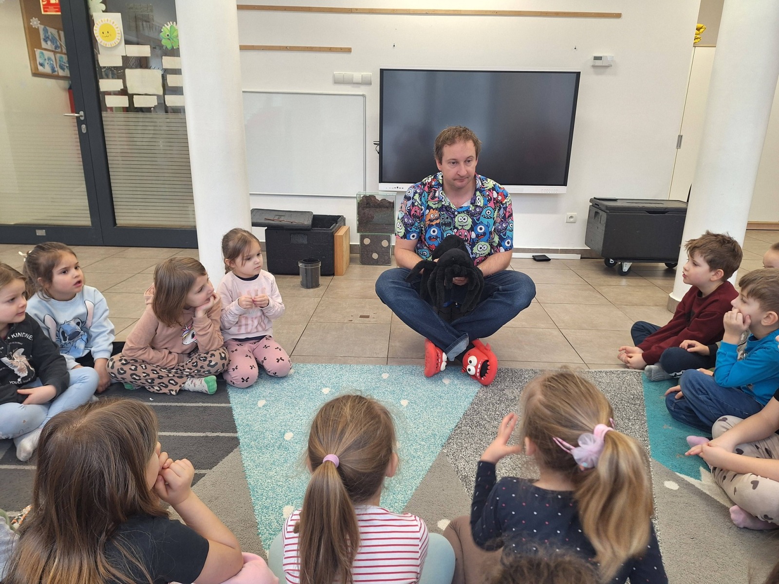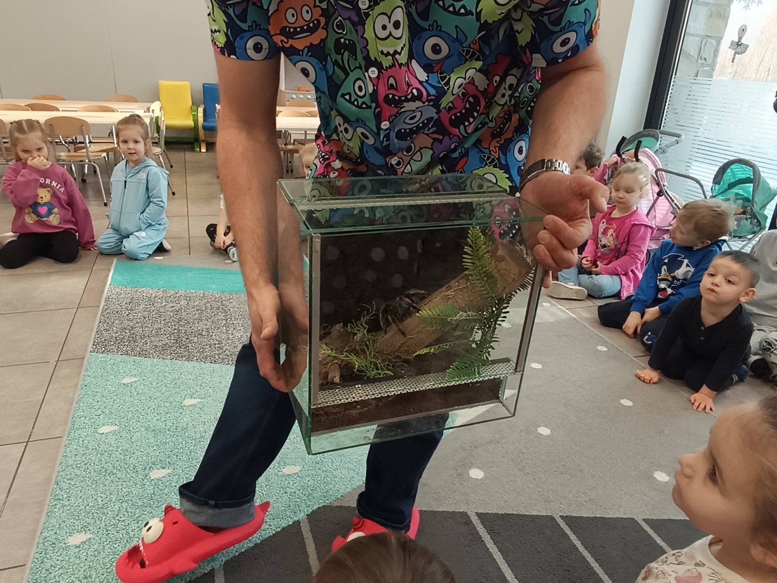 Odważniejsze przedszkolaki mogły dotknąć wylinek ptaszników oraz zabrać na ręce ich przysmak- żywe karaczany.🪳