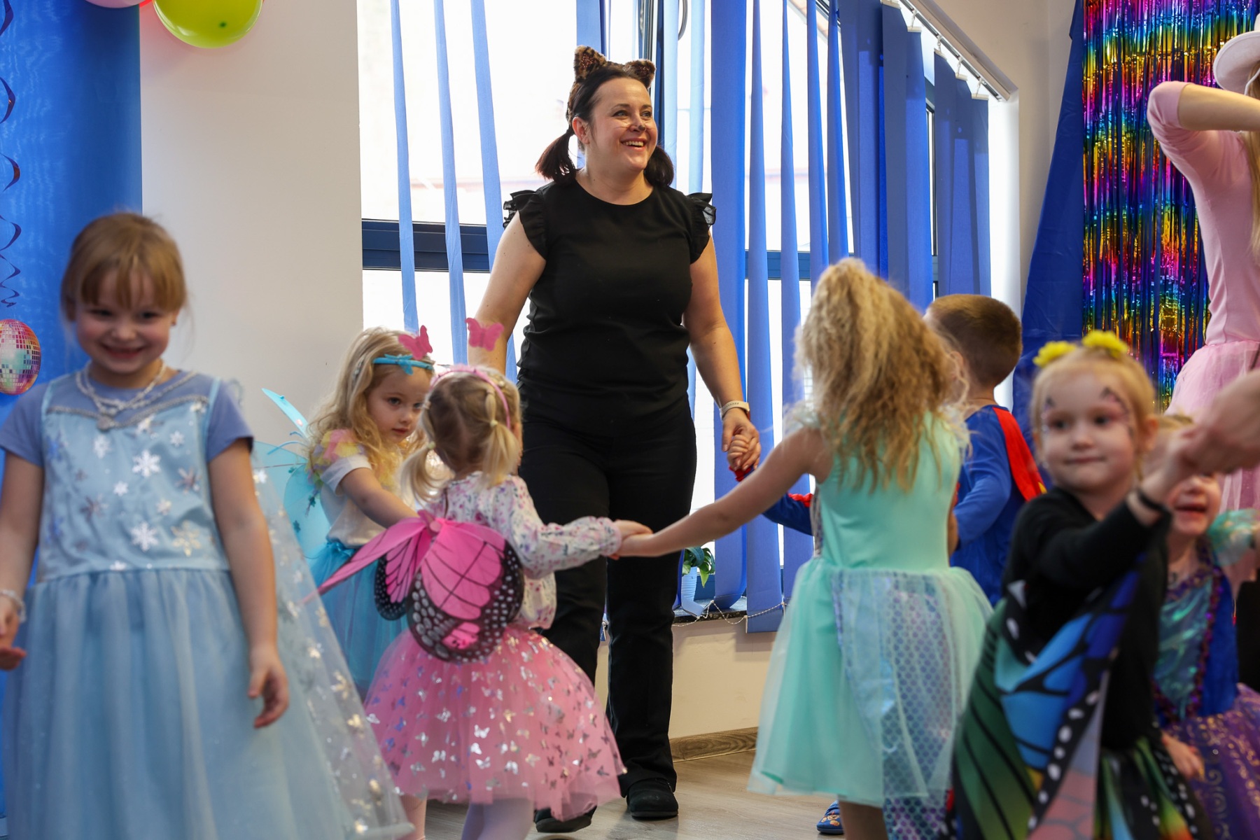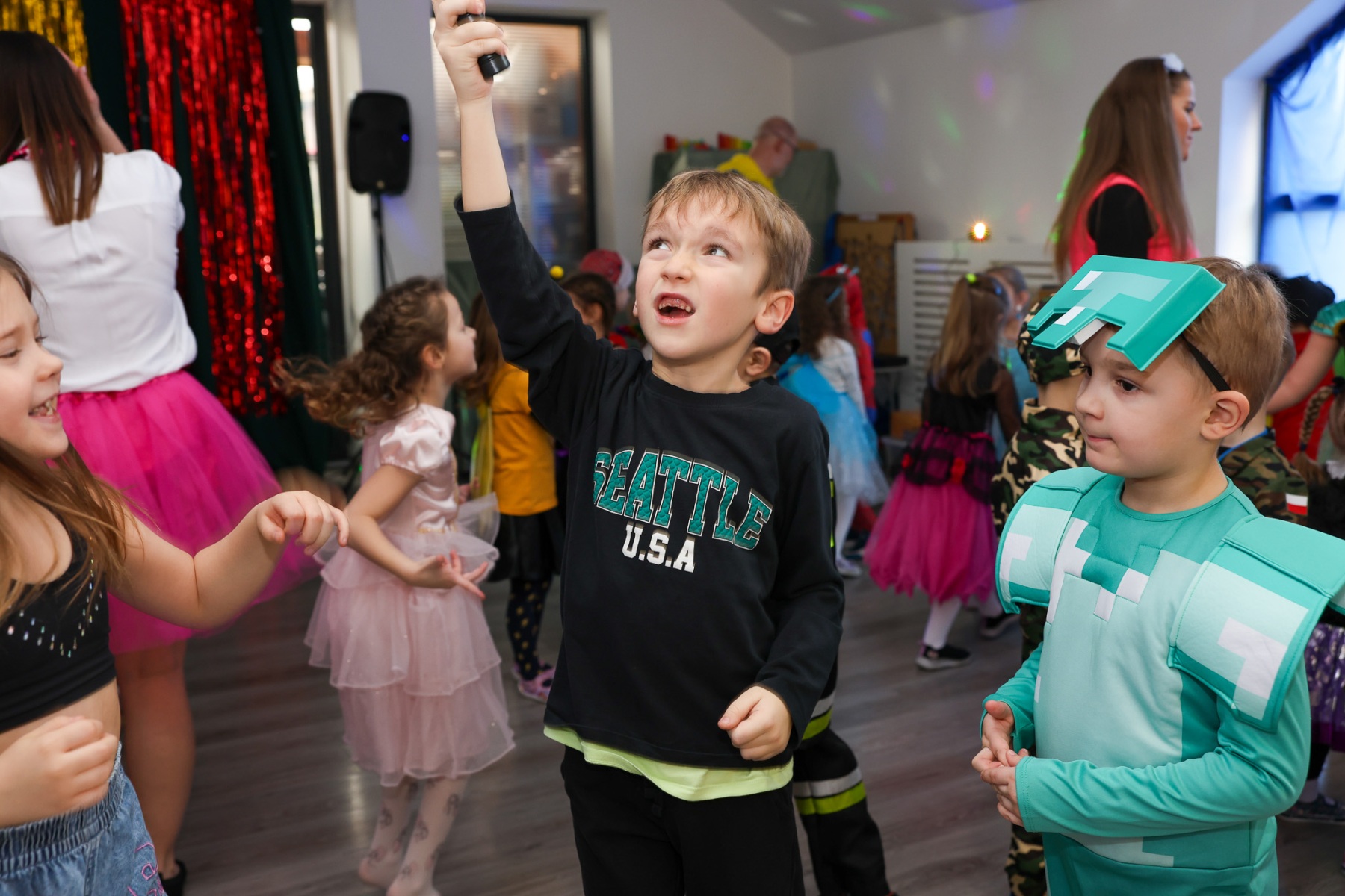 Bal karnawałowy w przedszkolu to dla dzieci wyjątkowe wydarzenie, łączące taniec, przebieranki i wspólne zabawy, które sprzyjają integracji oraz rozwijają kreatywność. Dzieci wcielają się w bajkowe postacie (wróżki, superbohaterowie, zwierzątka), a całość uatrakjniają konkursy, skoczna muzyka, kolorowe dekoracje oraz słodki poczęstunek. Bardzo dziękujemy panu Zbyszkowi za poprowadzenie przedszkolnej imprezy!! 😁