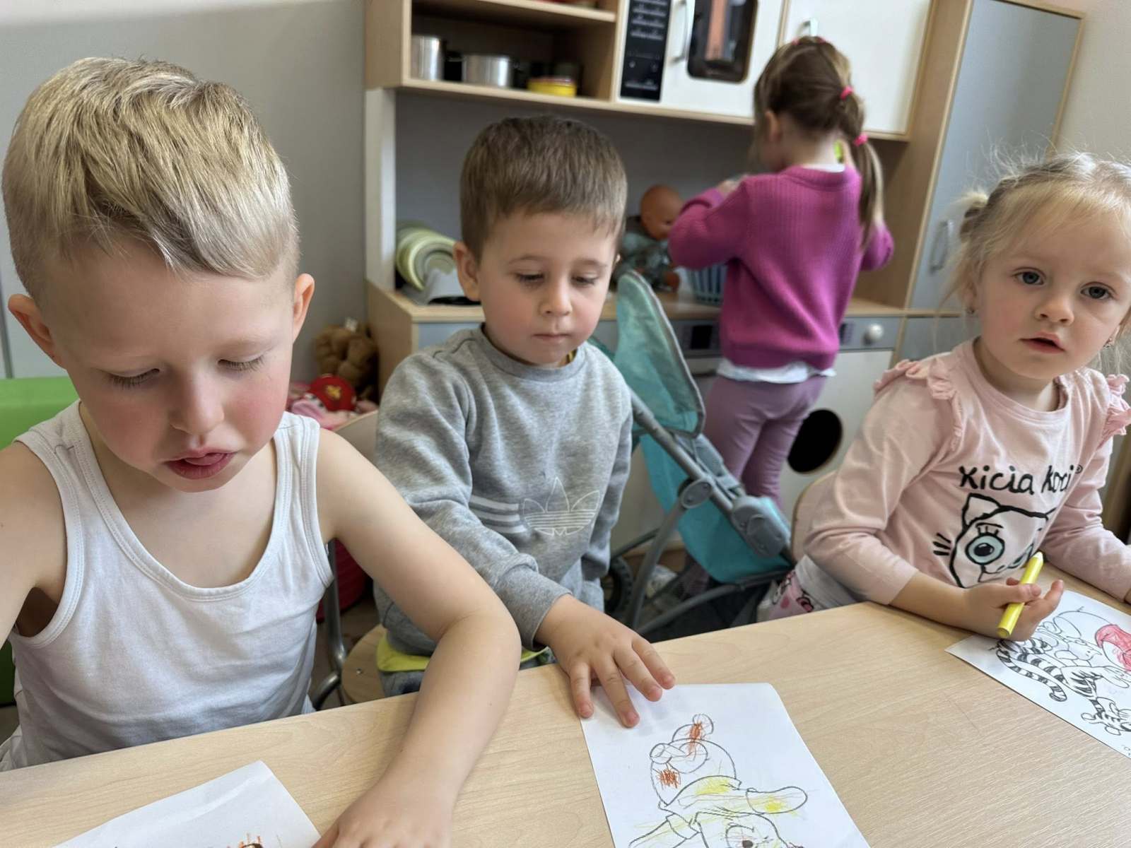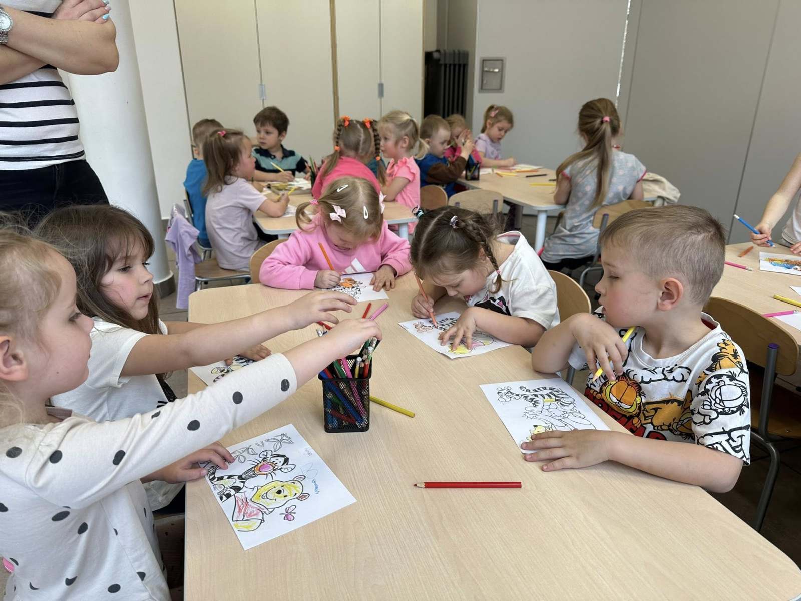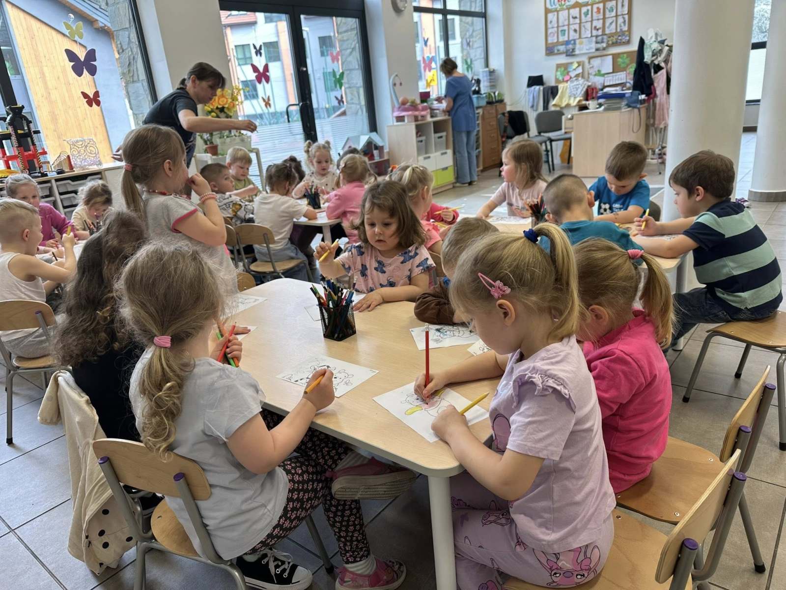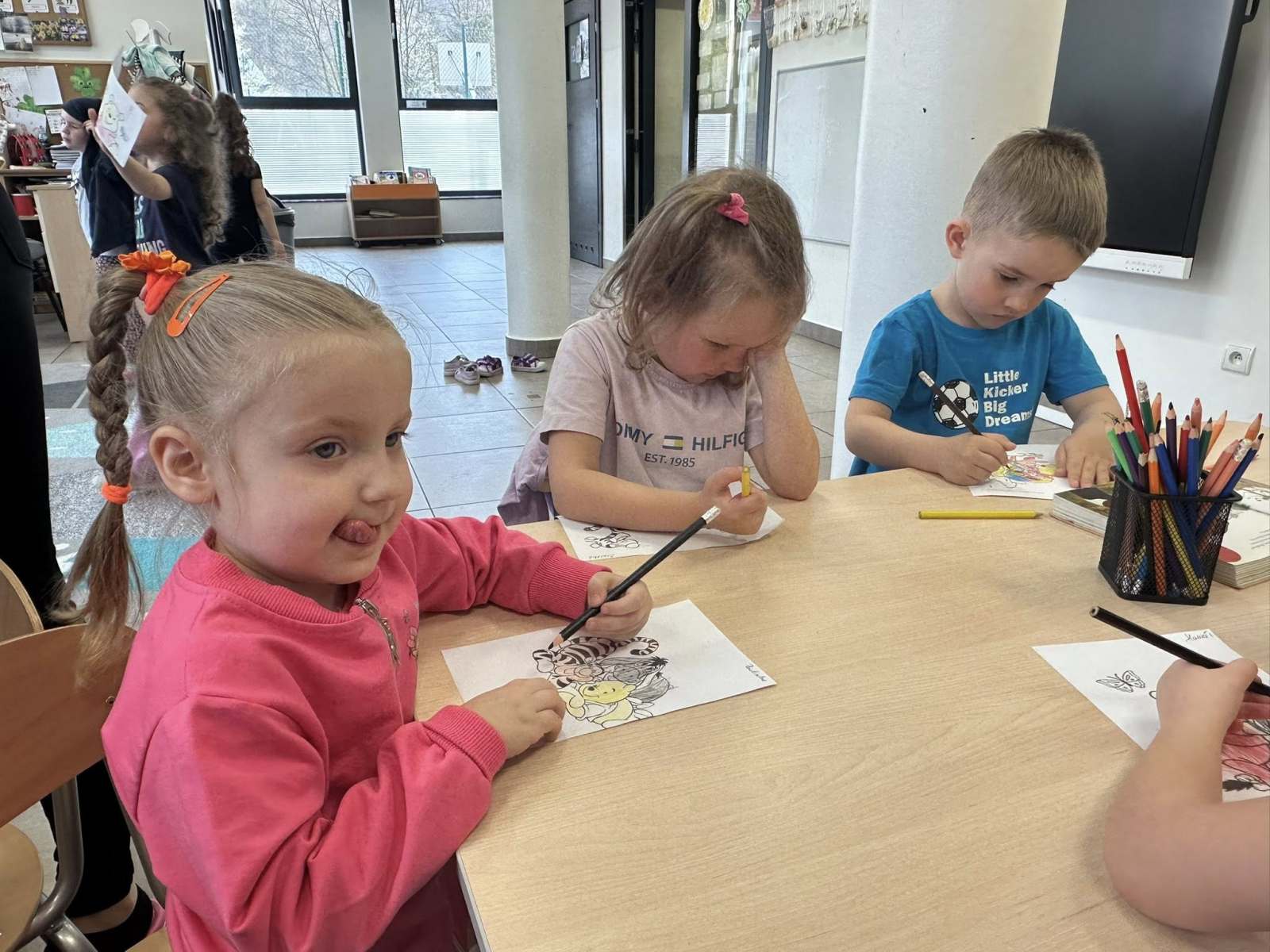 Na zakończenie spotkania przedszkolaki wykonały prace plastyczne, kolorując przygotowane obrazki. Zajęcia przebiegały w radosnej atmosferze i sprawiły dzieciom wiele radości. Zapraszamy na kolejne akcje czytelnicze i spotkania w bibliotece.